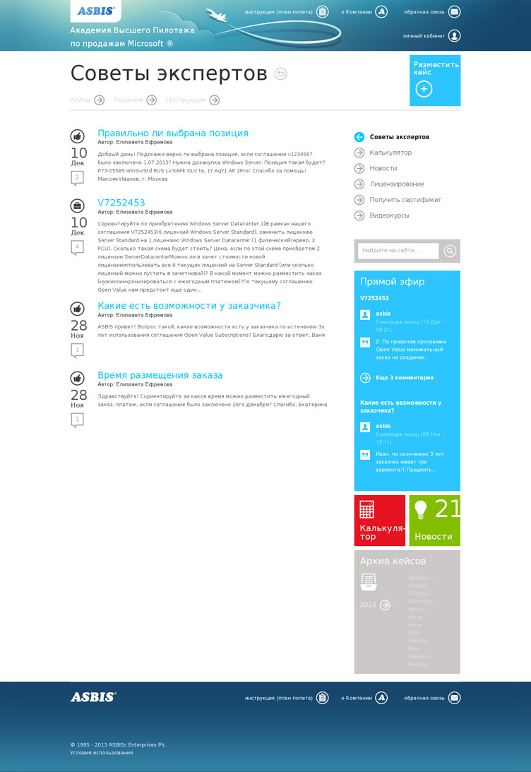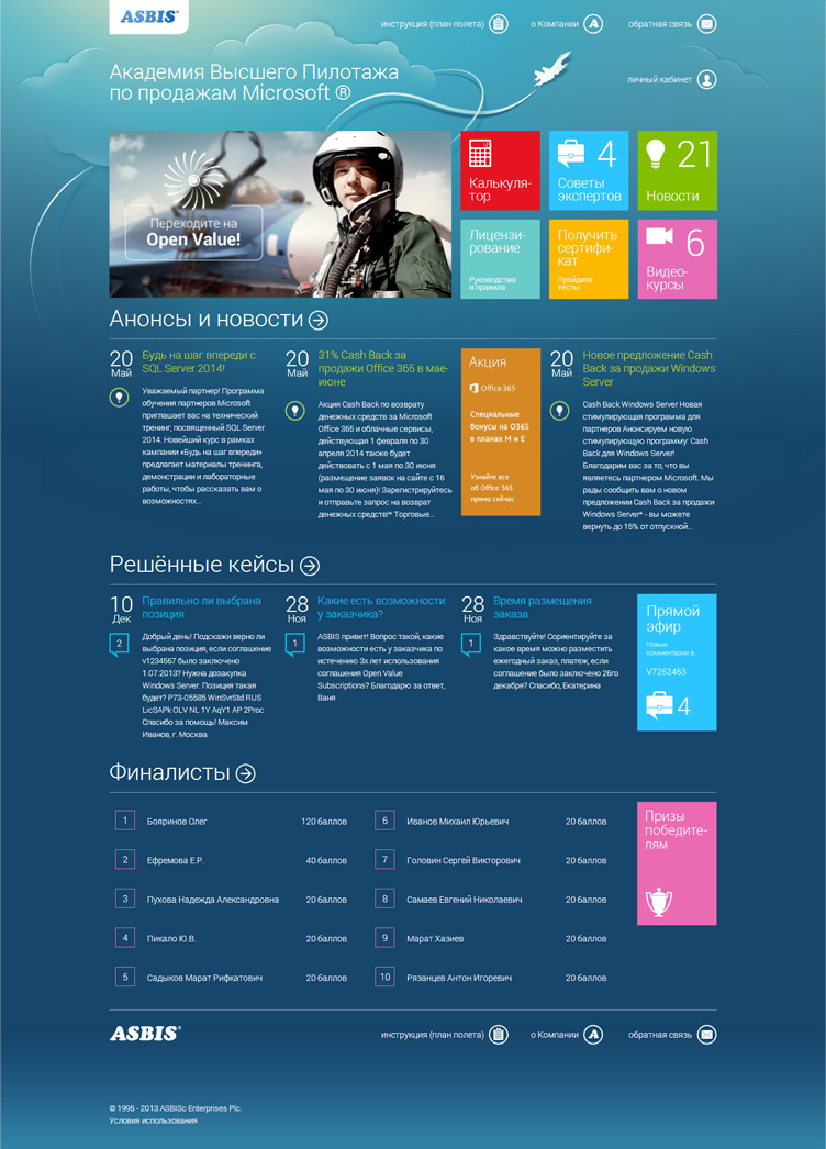 Большой выбор лицензий среди программного обеспечения осложняет партнерам выбор нужной версии. Для решения этой проблемы был разработан портал “Академия высшего пилотажа по продажам Microsoft”, который помогает партнерам разобраться в тонкостях выбора лицензионных версий программ.