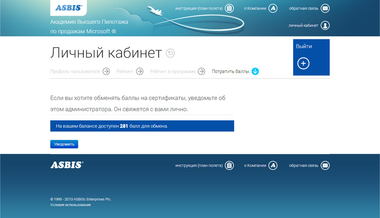 Заработанные баллы можно потратить в личном кабинете на подарки и сертификаты. Таким образом, партнеры компании Асбис могут совершенствовать свои знания с помощью портала.