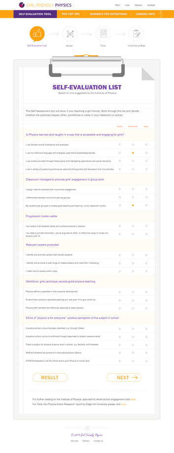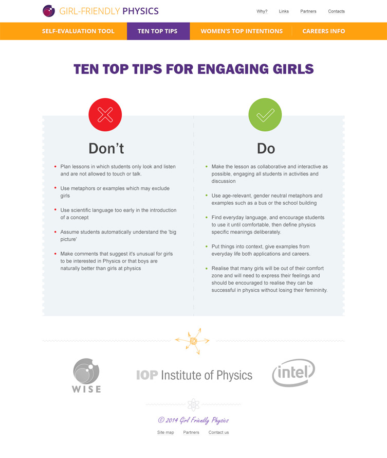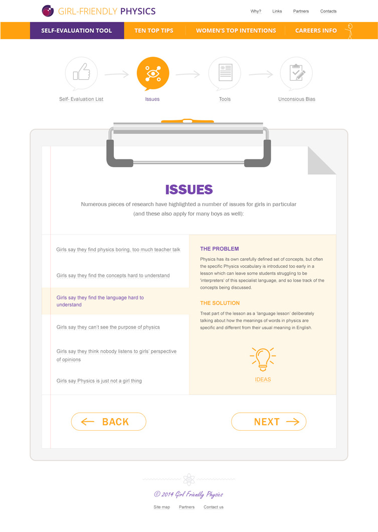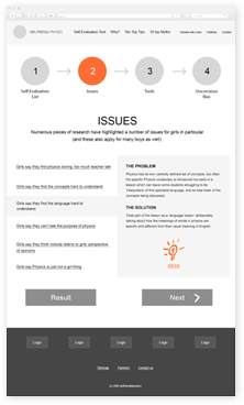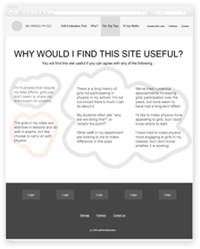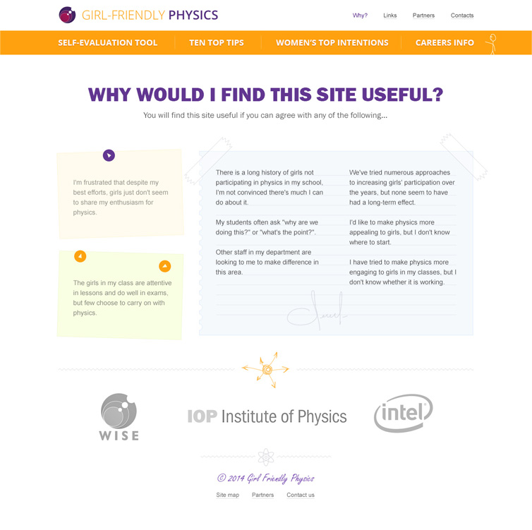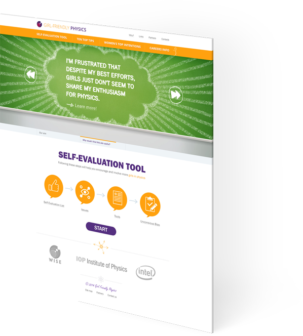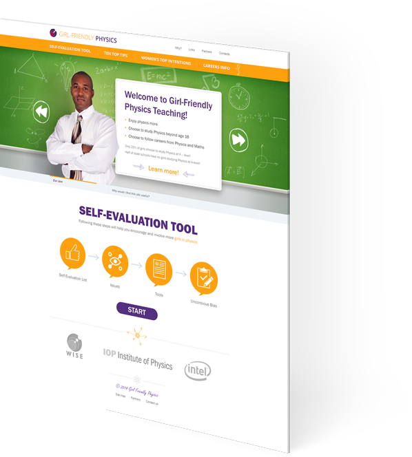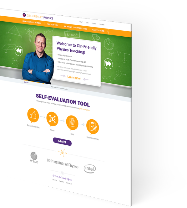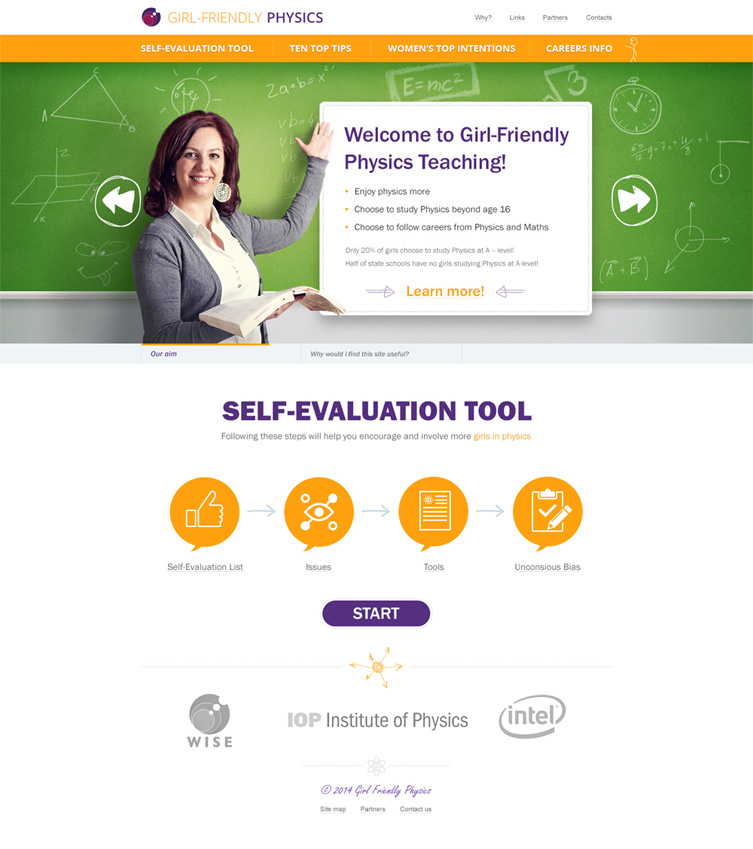 Задача проекта — помочь учителям-стажерам в повышении популярности физики среди девушек старше 16 лет. Задача непростая и чтобы самих преподавателей вовлечь в обучающий процесс, сайт был выполнен в виде пошаговой игры.